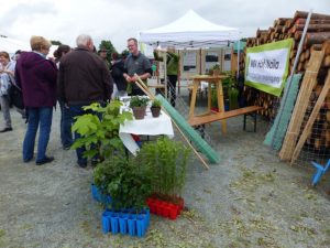 Auf dem Festplatz und am Waldparcours stellten die WBVen Hof/Naila und Münchberg die Einzelschutzvarianten gegen Wildverbiss vor: von der Drahthose, über Wuchshüllen, bis hin zu Verbissschutzklammern. Außerdem wurden auch Containerpflanzen gezeigt. Leider knüpfte das Wetter an den letzten FrankenWALDtag 2014 an und ab Mittag gab es kräftige Regenschauer.